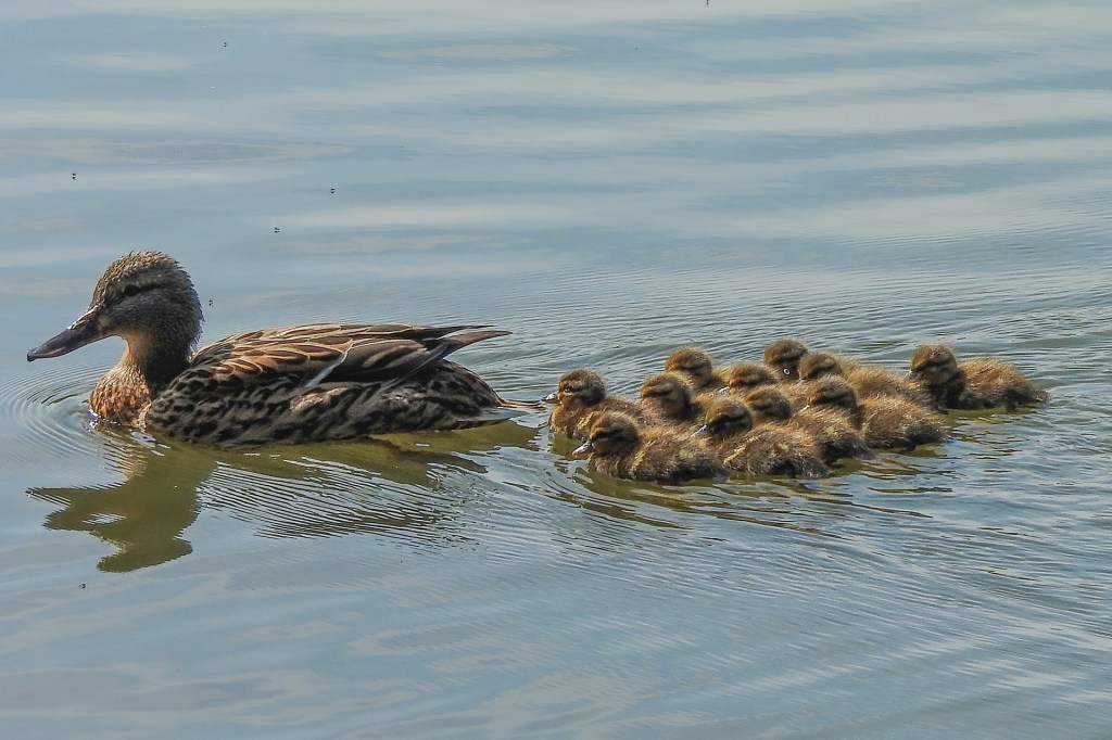A duckling hatches from an egg. It stays close to its mother. It follows her everywhere.