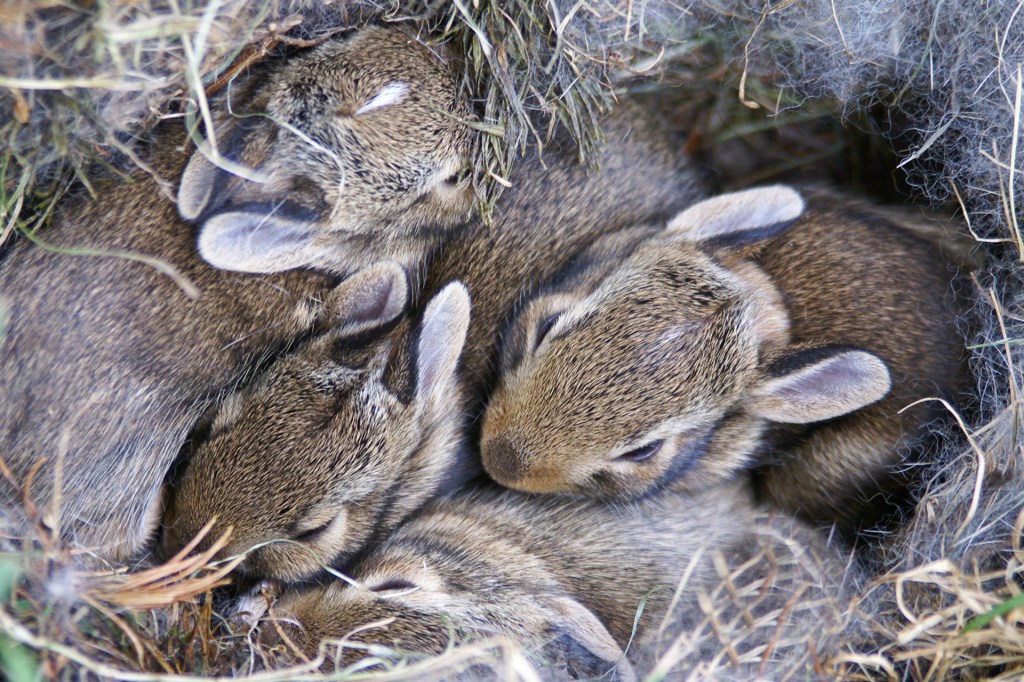 A mother rabbit can give birth to 14 kittens at a time. The kittens sleep in a nest in the ground.