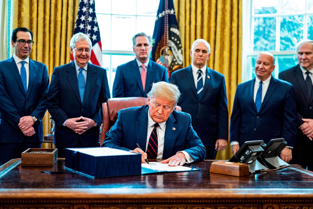 SIGNING A LAW President Donald Trump signs the CARES Act into law on March 27.