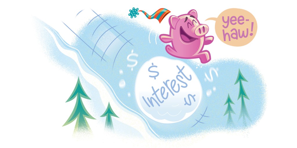 Compound interest: Interest you earn on interest you’ve already earned. Imagine putting $10 in a savings account that gives 10% interest each year. After the first year, you’d make $1 in interest. After the second year, you’d make more than $1. That’s because you’d be earning interest on your original $10 plus the dollar you made last year. Think of it as a snowball rolling downhill: It just keeps getting bigger.