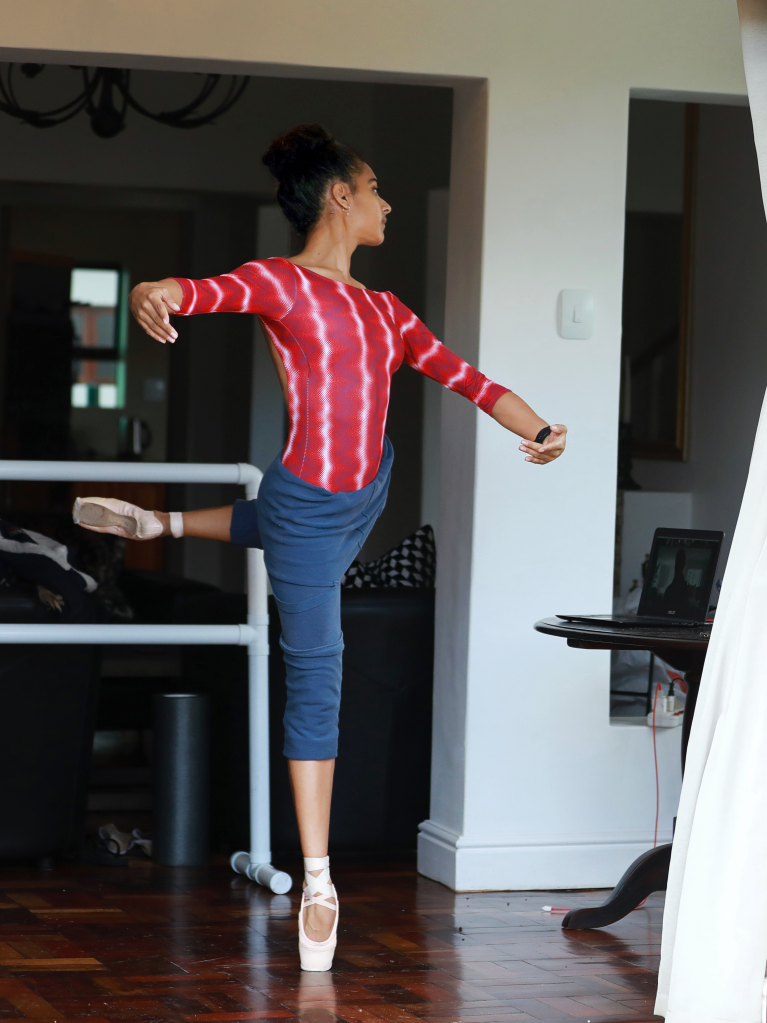 MEET ME ON ZOOM People around the world use Zoom to connect. Here, a dancer in Cape Town, South Africa, takes a class via Zoom.
